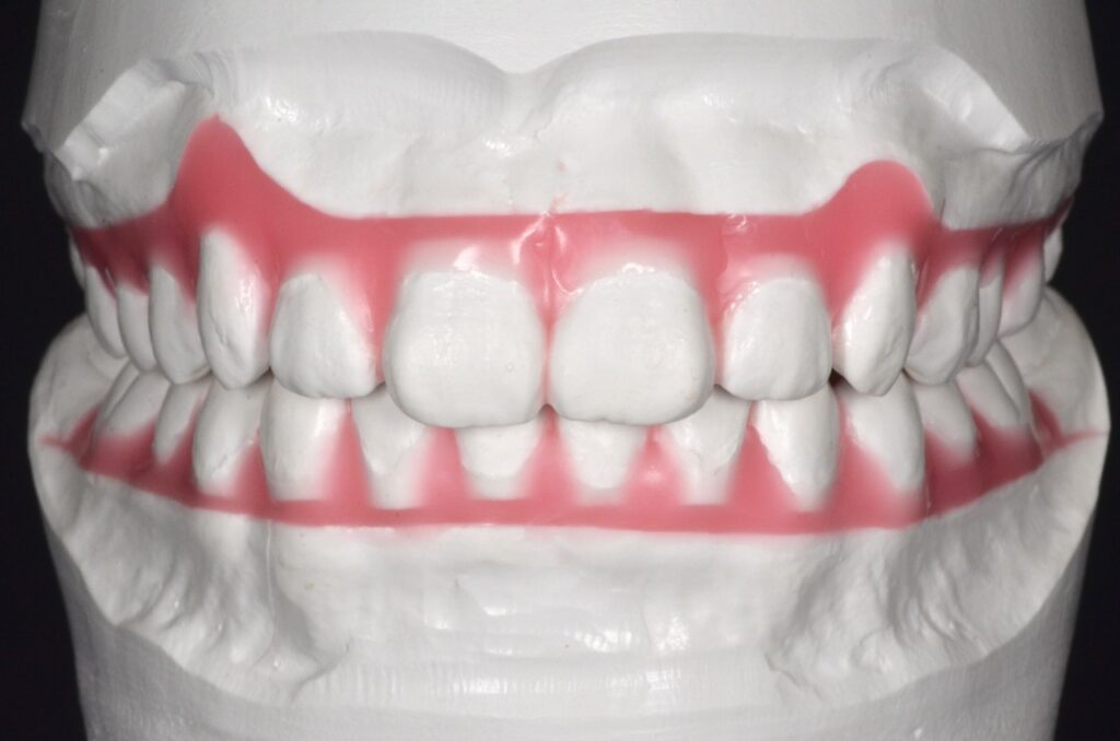 下の写真は治療前にどこまで並ぶかシミュレーションしたものです。歯科技工士が個々の歯列に合わせて製作します。実際にお手に取っていただけます。