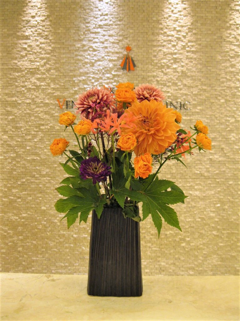 当院では、受付カウンターに週替わりで季節のお花を飾っております。