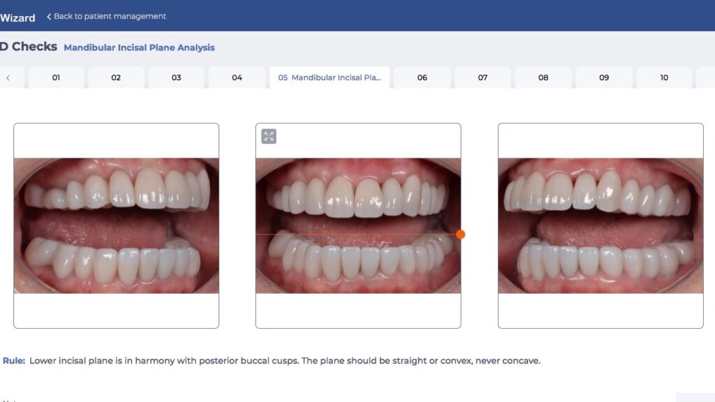 ドーソン診断とは、23枚の写真と診断ソフトを使い、顔貌と口腔全体を総合的に評価できる診断です。画像は診断アプリの一部です。