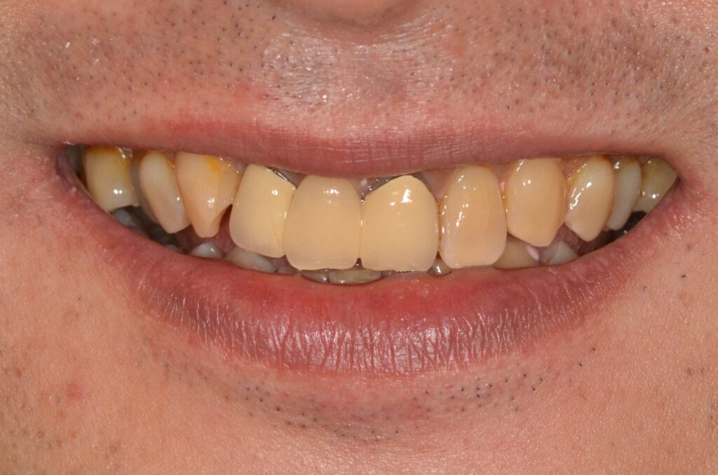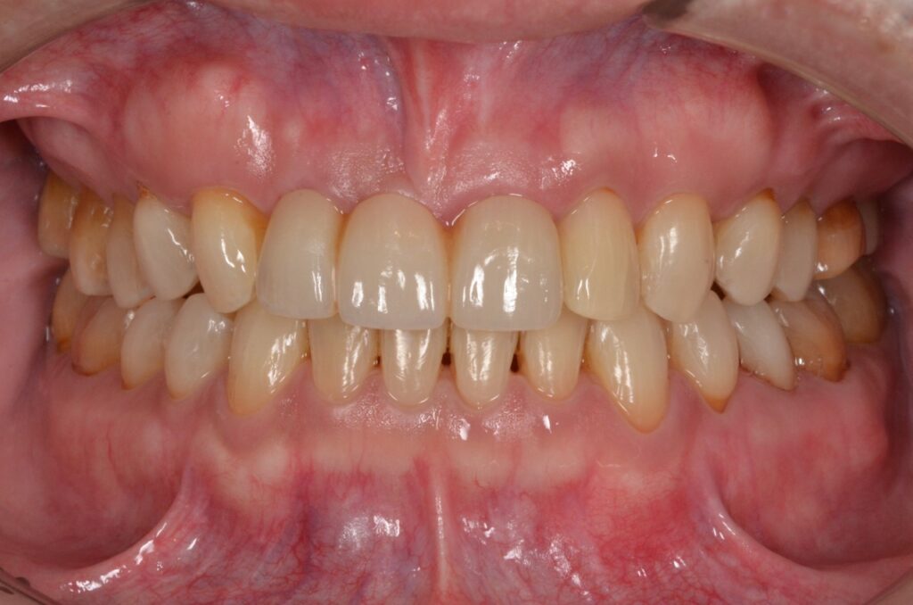 また前歯は失活歯にブリッジタイプのセラミックが入っていましたが、長年の疲労が蓄積されて治療不可能でしたので患者様の同意のもとインプラント治療となりました。